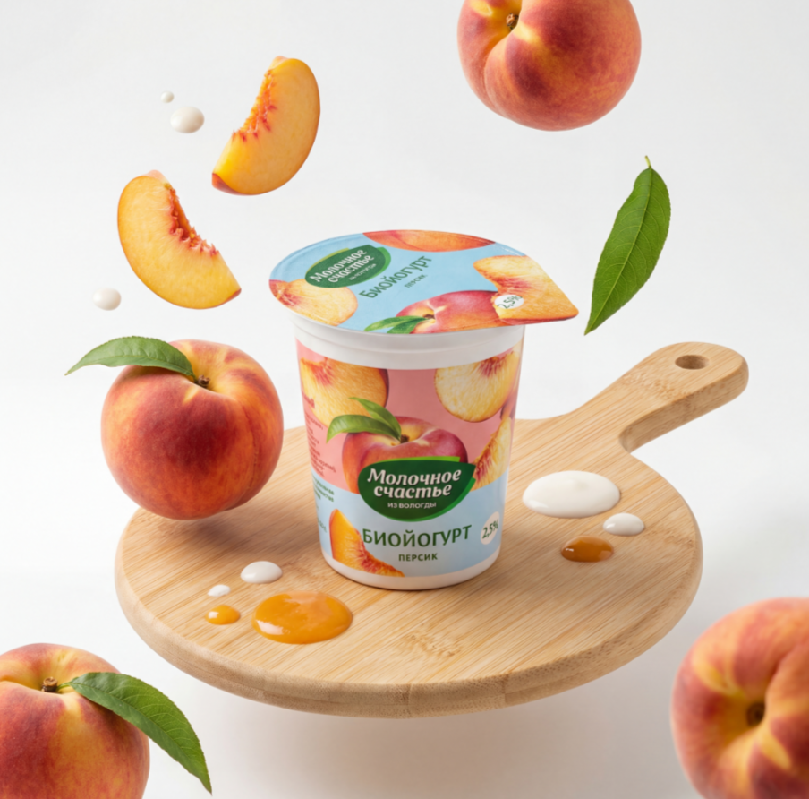 Состав: цельное молоко, обезжиренное молоко, начинка с кусочками ягод «Персик» нестерилизованная, сахар-песок, закваски на чистых культурах молочнокислых микроорганизмов и бифидобактерий.