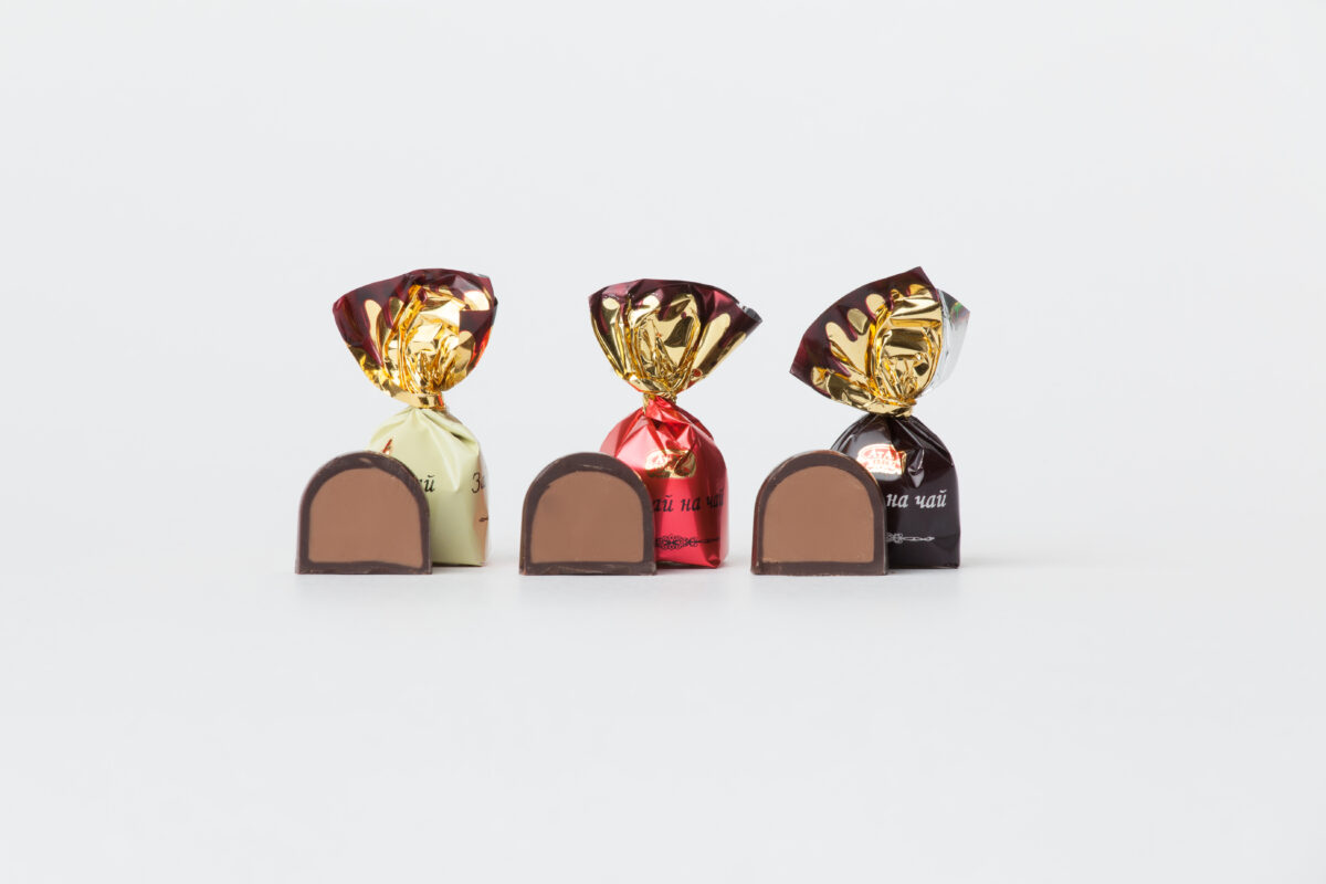 Конфеты мини-купольной формы в фирменной темной глазури с нежной начинкой со вкусами: «Ореховая паста», «Шоколадно-ореховый крем», «Миндаль».