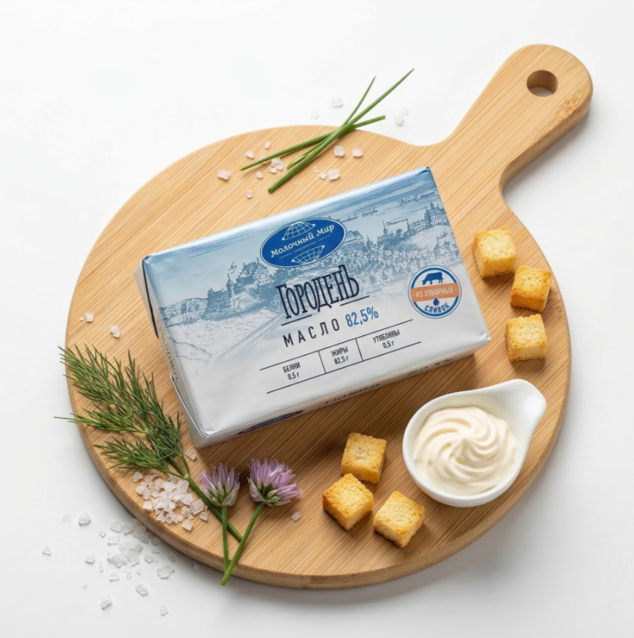 Сливочное масло «Городенъ» жирностью 82,5 % — это высококачественное масло, приготовленное из пастеризованных сливок. Оно обладает насыщенным вкусом и кремовой текстурой и идеально подходит для выпечки, приготовления соусов или намазки на хлеб. Упаковано в фольгу, что позволяет сохранить свежесть и качество продукта.