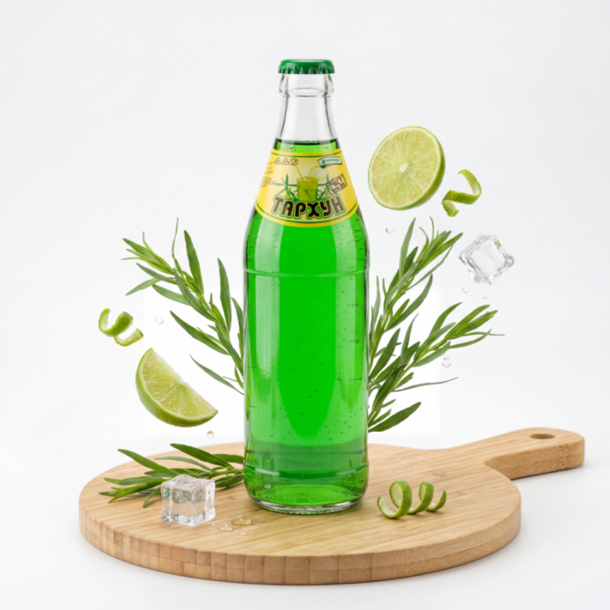Сладкий газированный прохладительный напиток с ярким ароматом эстрагона прекрасно утолит жажду, а натуральный зеленый цвет напомнит о богатейшей природе Кавказа.