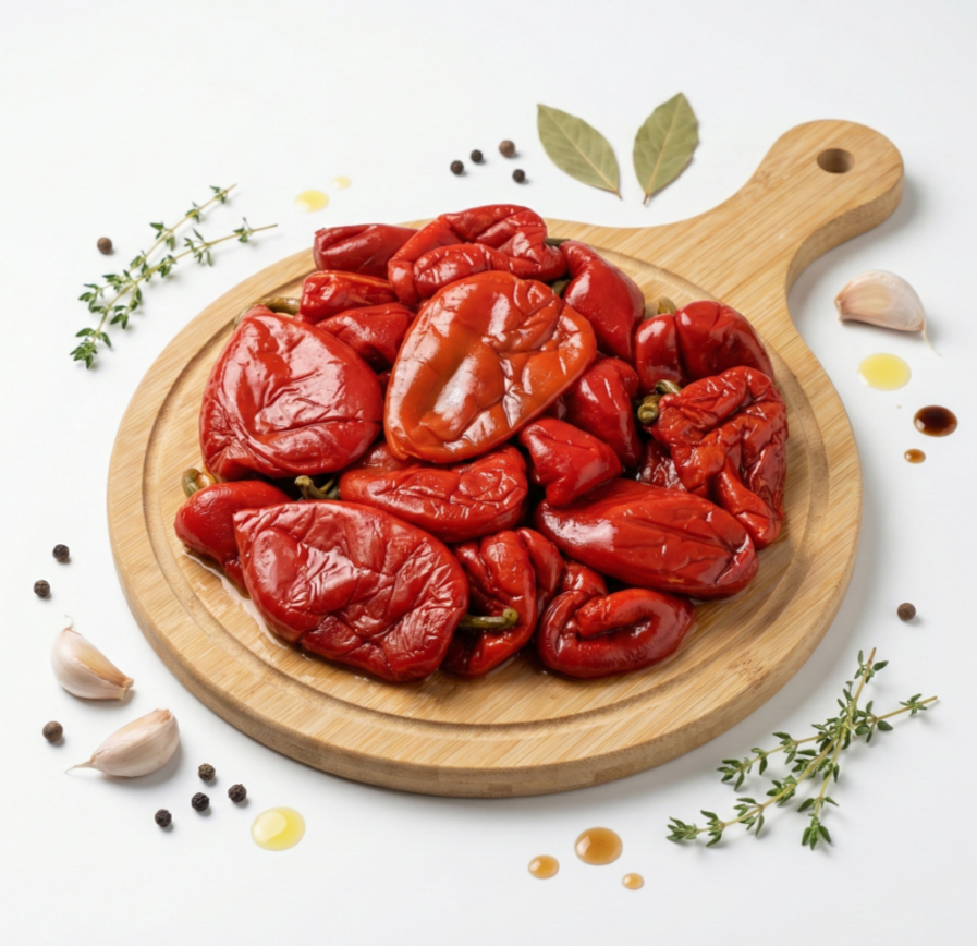 Перец лечо представляет собой ароматную закуску из сладкого болгарского перца, томлёного с чесноком и специями, в составе которой есть растительное масло и уксус для яркого вкуса и длительной свежести. Продукт готов к употреблению и хорошо сохраняет структуру перца, предлагая насыщенный пряно-кислый профиль, который подходит как самостоятельная закуска или как дополнение к горячим блюдам. Изготовлен по традиционной рецептуре с добавлением лаврового листа и горошка душистого перца, что придаёт лечо многогранный аромат.