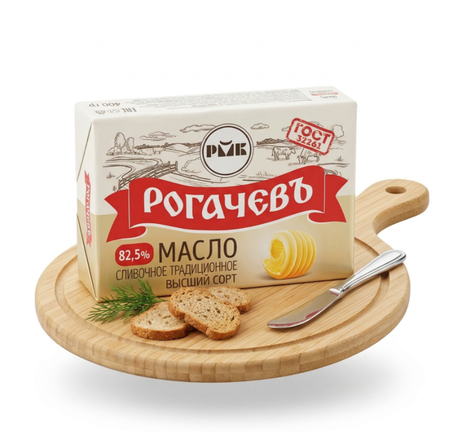 Масло сладкосливочное несолёное «Рогачёвъ» 82,5% высшего сорта, 1 кг.