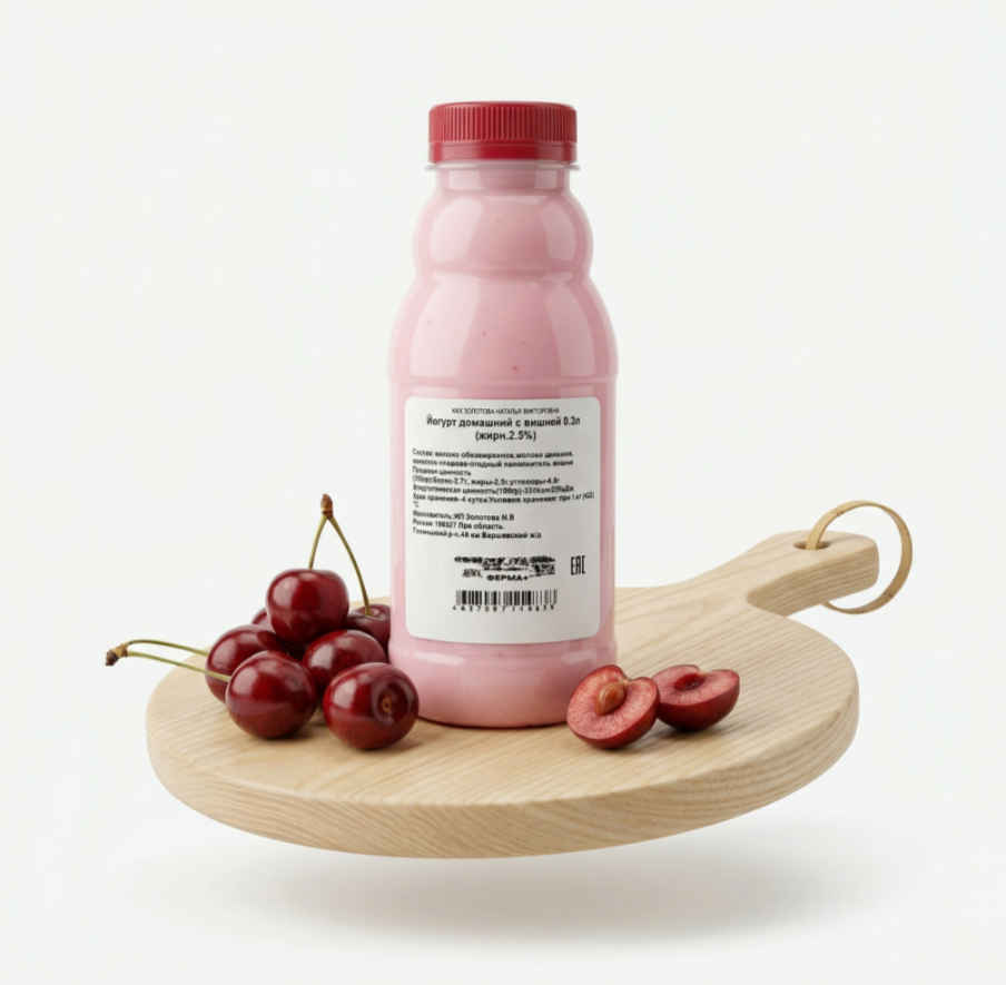 Натуральный домашний йогурт с вишней, приготовленный из цельного и обезжиренного молока с использованием живой закваски. Обладает мягкой, нежной текстурой и приятным ягодным вкусом, идеально подходит для завтрака, перекуса или десерта.