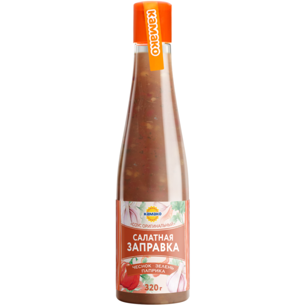 Выразительное сочетание чеснока и паприки делает эту салатную заправку подходящей к любой салатной зелени и большинству овощей, особенно к огурцам, капусте и моркови. Рекомендации по употреблению: порцию салата из свежих овощей (250-300 г) заправить 2-3 столовыми ложками заправки и перемешать. Добавить масло по желанию.