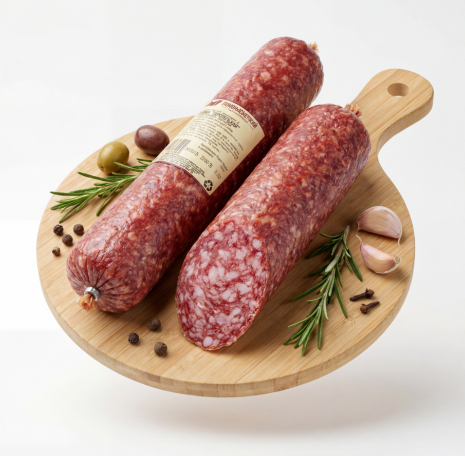 Положительными свойствами продукта являются высокое качество отборного мяса, использование натуральных специй и трав, а также оптимальное содержание белка и жира, что делает продукт питательным и вкусным.