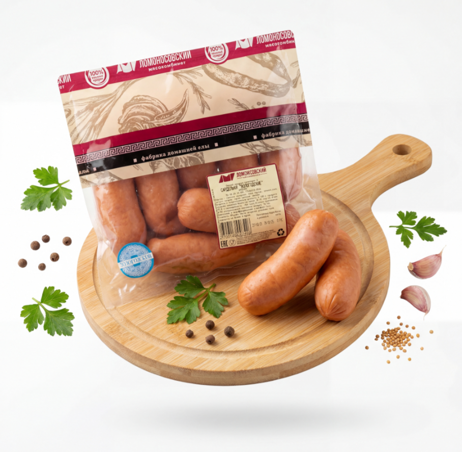 Производитель: ООО "Ломоносовский мясокомбинат", Российская Федерация, Ленинградская область, Ломоносовский район, д. Горбунки, Горбунковское сельское поселение, территория производственная зона Горбунки, здание №20, строение 1.