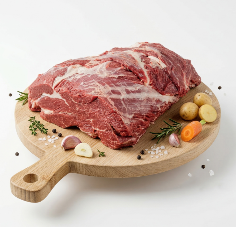 Бескостная шейная часть — это мясо с умеренным содержанием жира и тонкими волокнами, которые делают его сочным и ароматным после правильного приготовления. Этот отруб идеально подходит для блюд с длительной термической обработкой: тушения, запекания и приготовления рагу, когда мясо успевает стать нежным, а вкус раскрывается в полной мере.