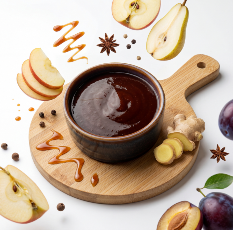 Соус Барбекю — это насыщенный соус с дымным ароматом, в котором мягкая сладость яблочного и грушевого пюре идеально сочетается с легкой кислинкой томатов и уксуса. Он обволакивает продукты аппетитной глазурью, делая мясо, овощи и закуски более сочными и выразительными на вкус. Умеренная сладость, приятная кислинка и деликатный привкус жидкого дыма создают тот самый «гриль-эффект», как из ресторанной кухни. Соус барбекю одинаково хорош и для горячих блюд, и как дип-соус для домашних посиделок.