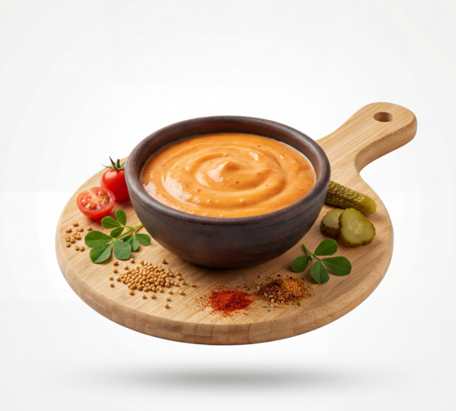Соус Тысяча островов — это насыщенный томатно-пряный соус с тонкими нотками пажитника, горчицы и специй, который делает привычные блюда ярче и сочнее. Его густая, кремовая текстура идеально подходит для бургеров, пиццы, сэндвичей, салатов, поке и боулов, придавая им выразительный вкус и аппетитный аромат. Соус отлично работает и как дип: достаточно подать его к картофелю, наггетсам или овощным палочкам — и обычный перекус превращается в ресторанную закуску. Это тот самый универсальный соус, который хочется держать в холодильнике «на все случаи жизни».