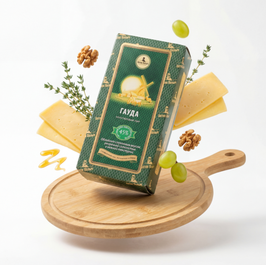 Сыр "Гауда" – это натуральный молочный продукт с насыщенным вкусом и приятной текстурой. Он идеально подходит для различных блюд, обладая хорошими вкусовыми качествами и универсальностью. Благодаря высокому содержанию жира, этот сыр имеет отличные кулинарные свойства и используется в приготовлении как холодных, так и горячих закусок. Сыр отличается легким солоноватым вкусом и плавящейся текстурой, что делает его отличным выбором для подачи на стол или включения в рецепты.