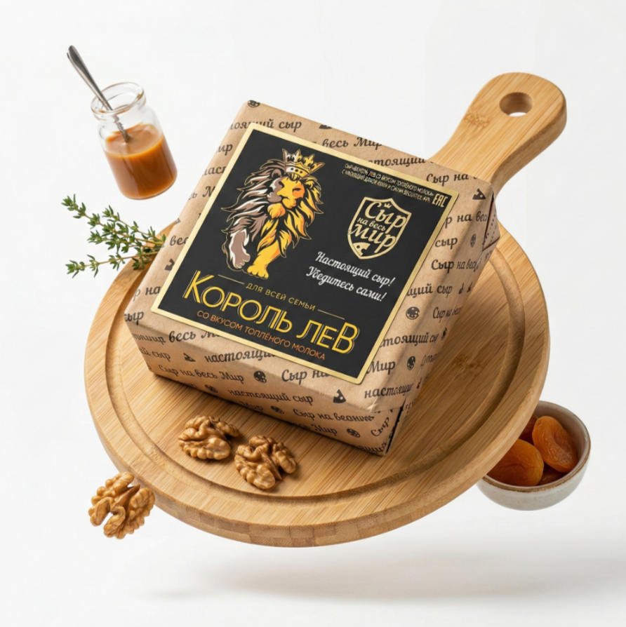 Сыр «Король Лев» со вкусом топленого молока — это насыщенный по вкусу полутвердый сыр с приятной кремовой текстурой, изготовленный по традиционным технологиям с добавлением натуральных компонентов. Его сливочный вкус и легкая кислинка делают его идеальным для приготовления разнообразных блюд, в том числе закусок, пиццы, бутербродов и салатов. Сыр обладает ярко выраженным вкусом топленого молока, который особенно раскрывается в горячих блюдах.