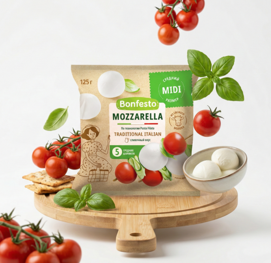 Моцарелла в рассоле — это мягкий сыр с слоистой текстурой и нейтральным вкусом, который идеально подходит для множества блюд. Один шар сыра в упаковке удобен для использования в приготовлении пиццы, закусок, салатов, брускетт и капрезе. Продукт поставляется в замороженном виде, что позволяет сохранить его свежесть и полезные свойства на протяжении всего срока хранения и транспортировки.