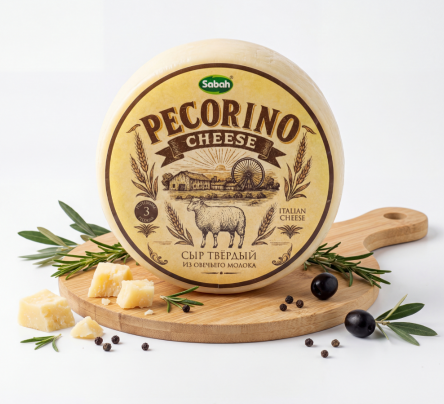 Сыр Pecorino Sabah производится по традиционным рецептам, которые сохраняют все полезные свойства и неповторимый вкус натурального овечьего молока. Каждая головка весом около 2,3 кг проходит тщательный процесс созревания, что позволяет развить сложные вкусовые ноты и добиться идеального баланса между соленостью и сладостью.