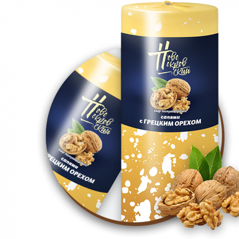 Сыр Салями с грецким орехом 45%, ТМ Новопокровский МС