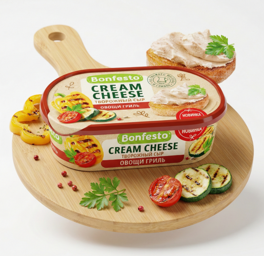 Cream Cheese Bonfesto с наполнителем «Овощи гриль» — это мягкий творожный сыр с кремообразной текстурой и насыщенным овощным вкусом. Он идеально подходит для намазки на хлеб или для быстрого бутербродного перекуса, а также используется для приготовления горячих блюд, таких как супы, соусы и пироги.
