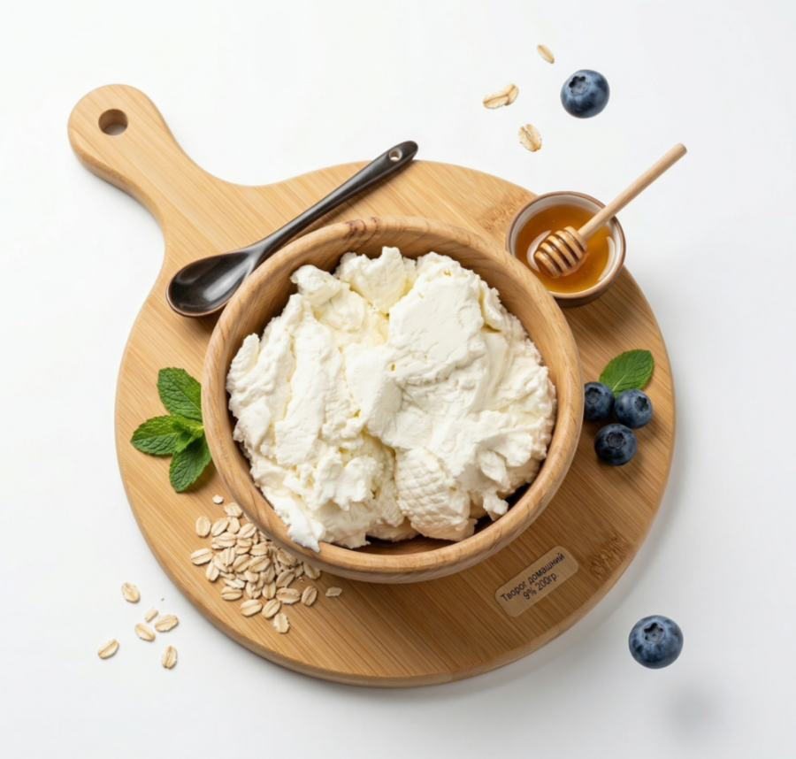 Натуральный домашний творог из цельного молока с мягким, насыщенным вкусом и плотной, влажной текстурой. Отлично подходит для завтрака, приготовления десертов, запеканок, салатов или употребления в свежем виде.
