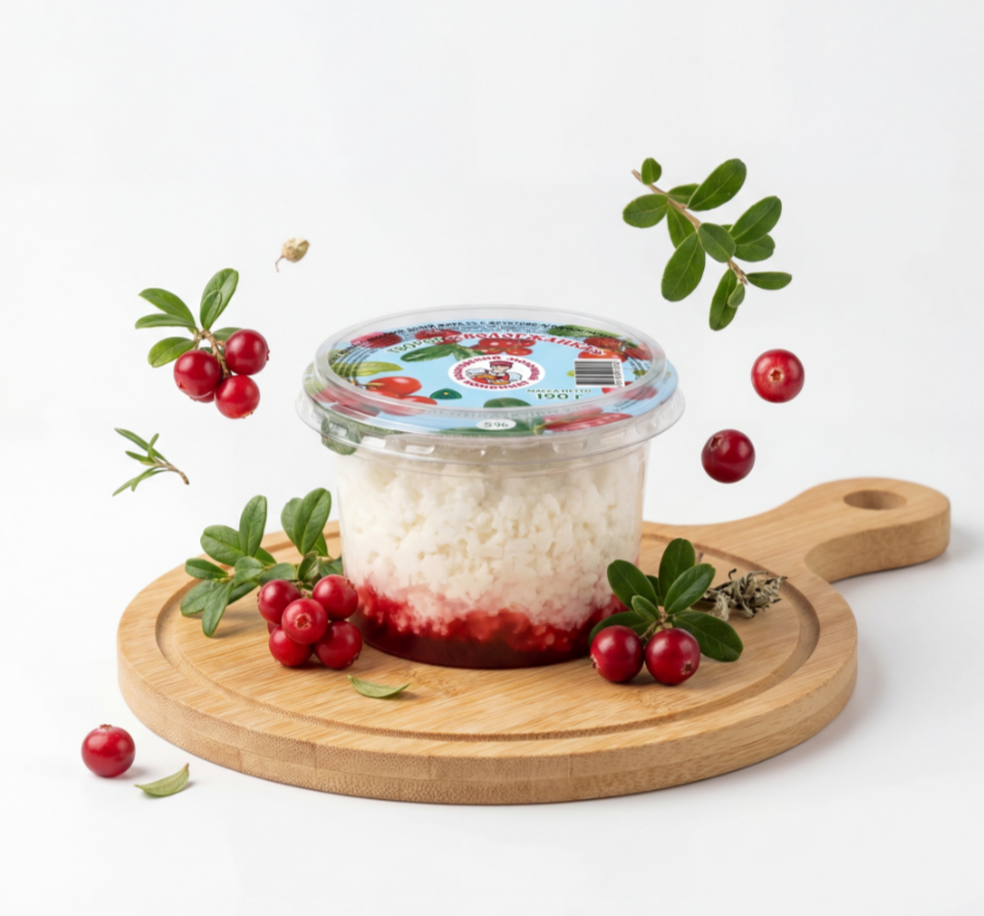 Состав: молоко обезжиренное, молоко цельное, с использованием заквасок на чистых культурах молочнокислых микроорганизмов, наполнитель фруктово-ягодный «Брусника-клюква».