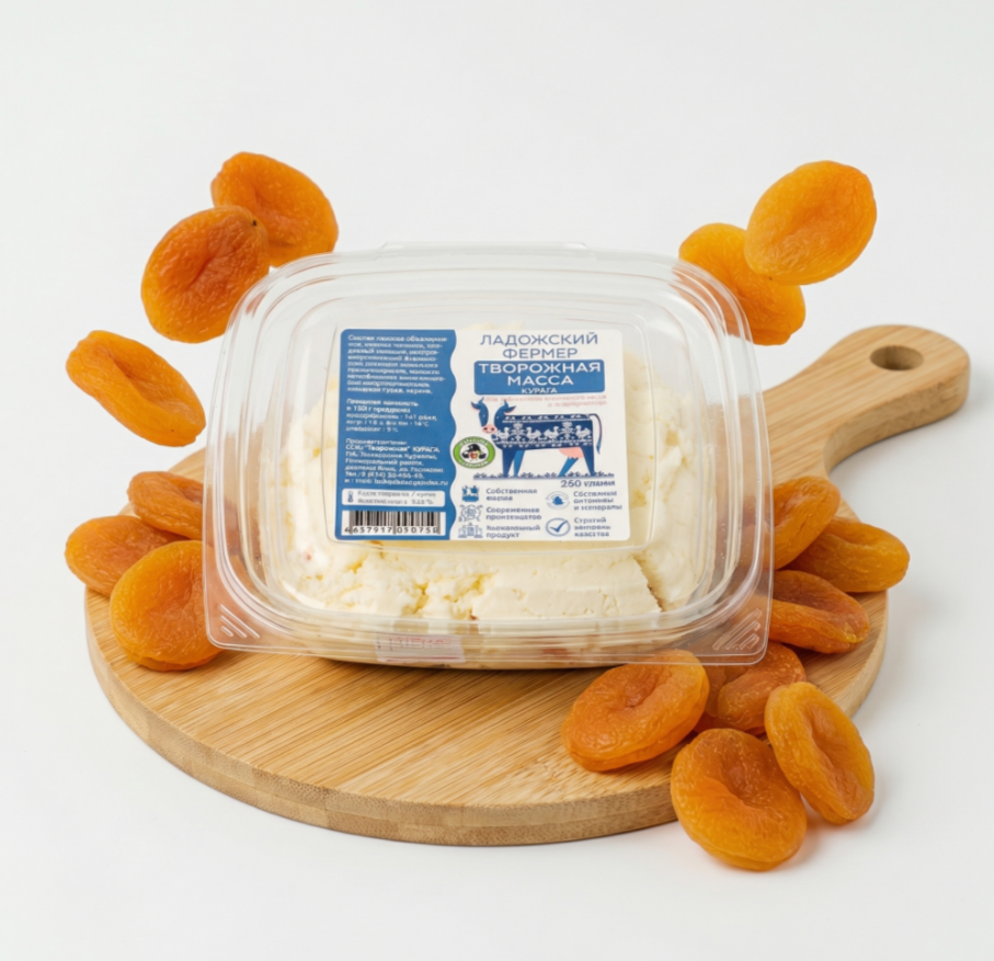 Свежая творожная масса из отборного молока с добавлением кусочков ароматной кураги.