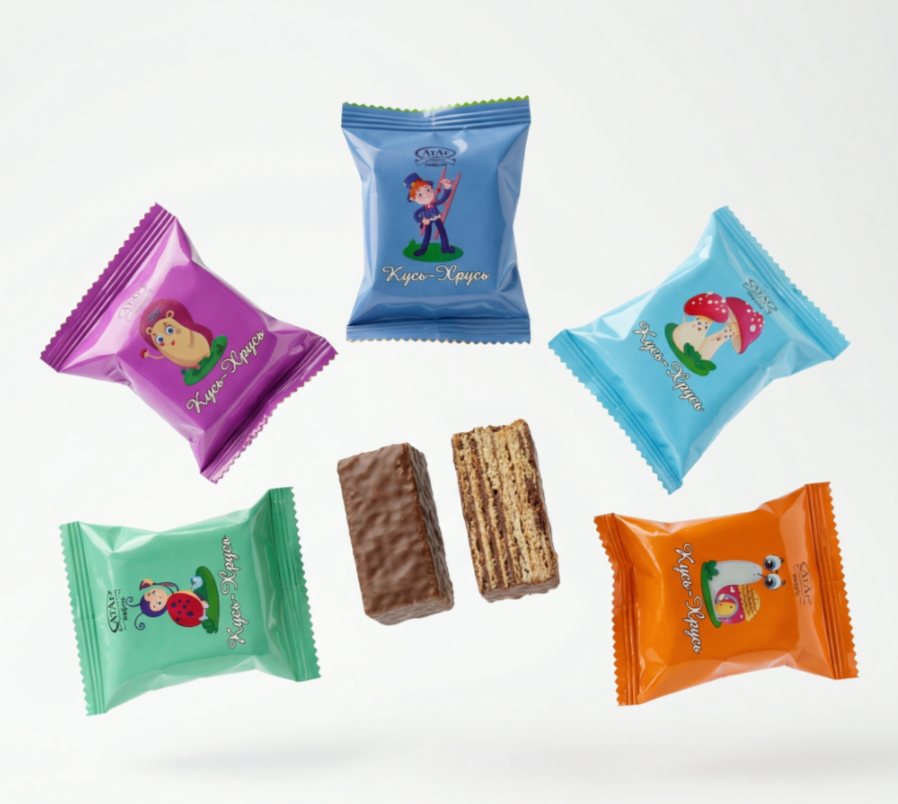 Воздушные хрустящие вафли в молочной фирменной глазури с нежной кремовой прослойкой с кокосовым вкусом.